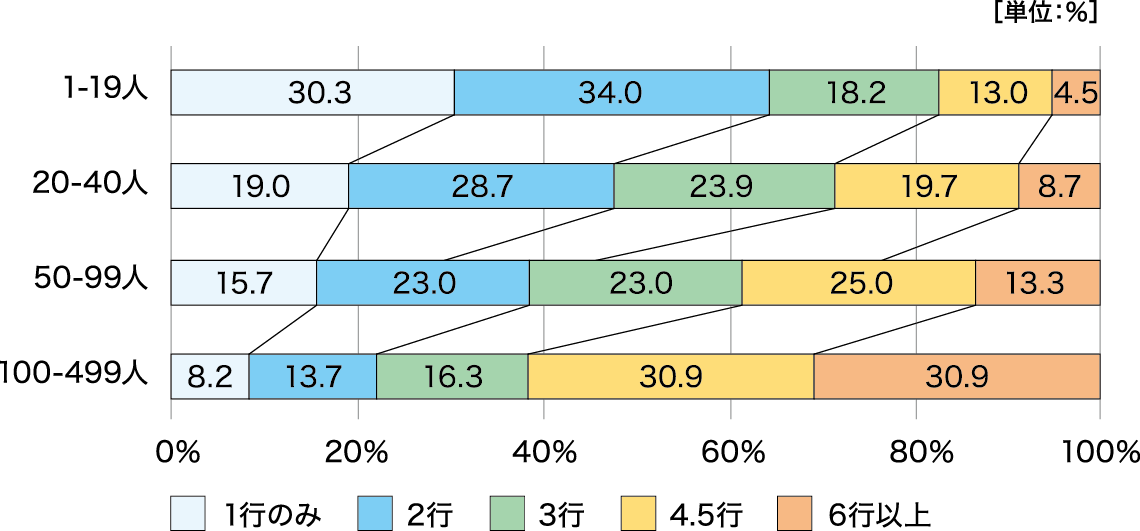 図表1 中小企業における従業員規模別取引金融機関数