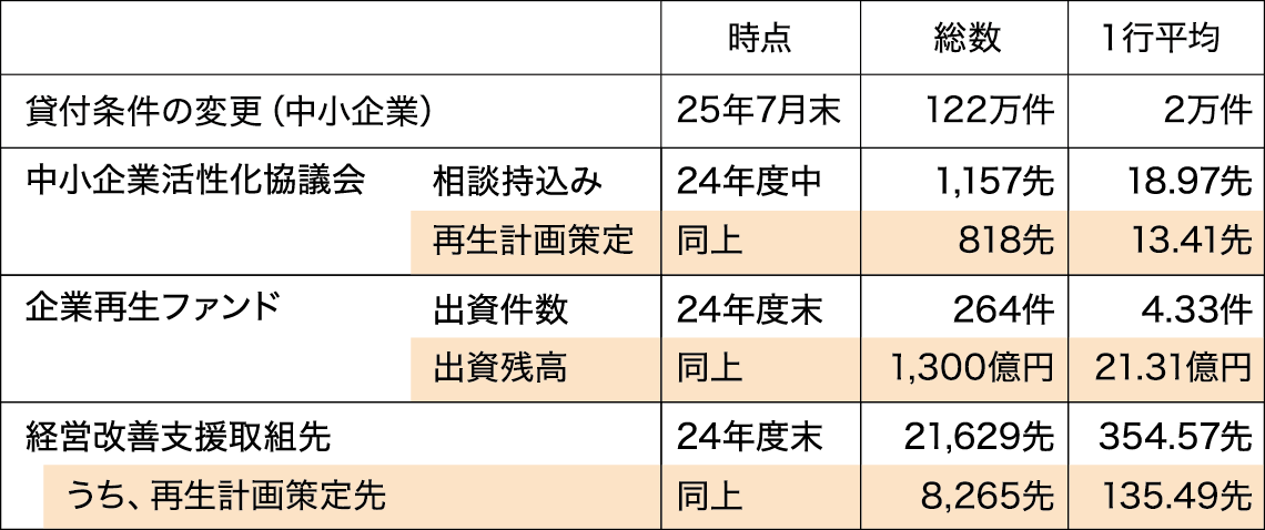 ※注:最上段「貸付条件の変更(中小企業)」は2020年3月期からの累計値。